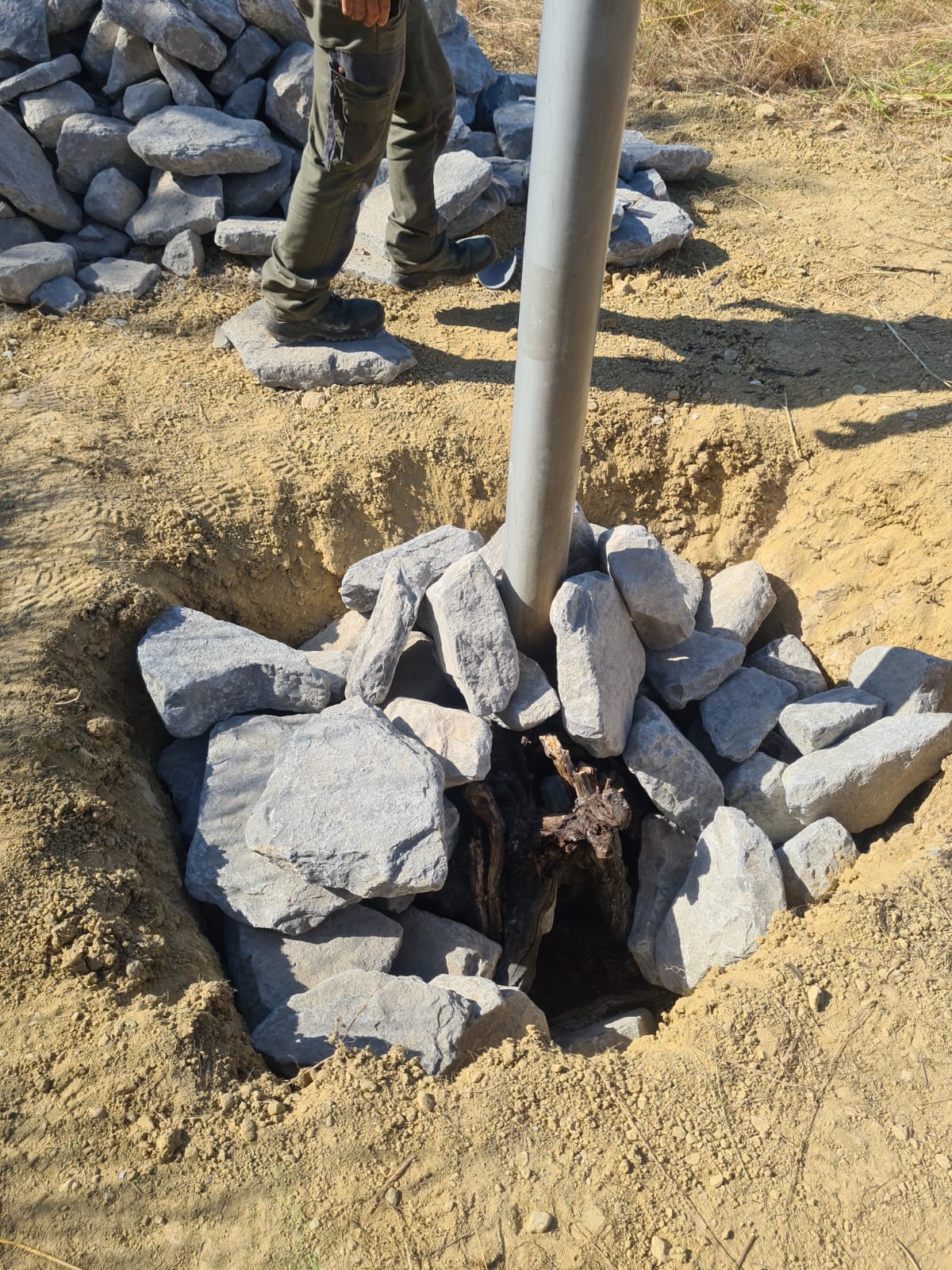 - Mission 1 (4 personnes) : Positionner les perchoirs sur les parcelles en suivant les piquets indicateurs, pour faciliter l’intervention de la pelle mécanique (les poteaux peuvent être portés à 1 ou 2 pers)